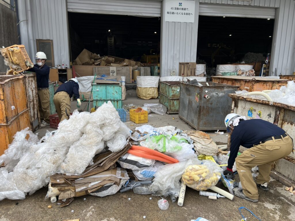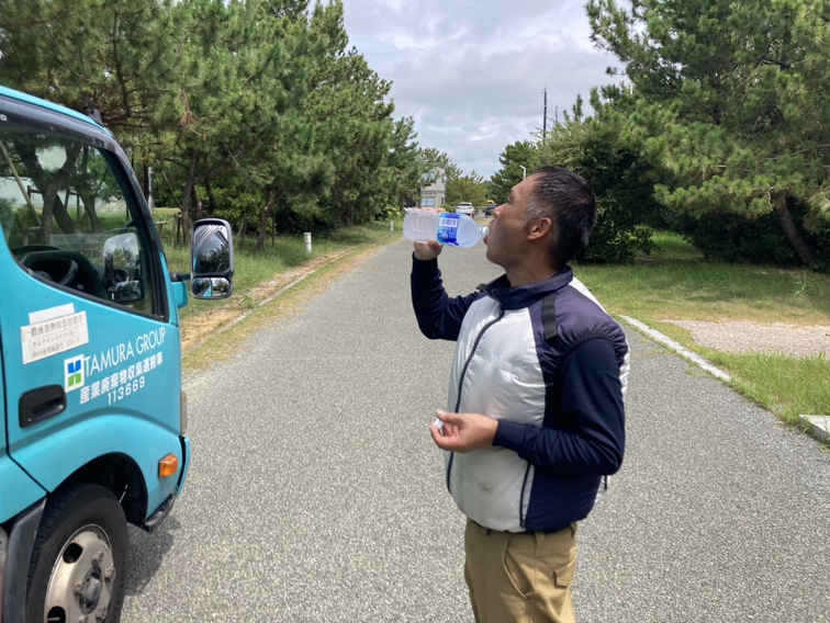 環境リサイクル事業部門の業務には、産業廃棄物の収集・運搬・分別などがあります。主に現場作業のため、夏は特に水分補給が欠かせません。