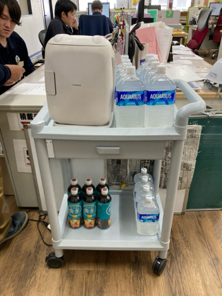 環境リサイクル事業部門のタムラエンバイロとキャロットたむらでは、熱中症予防のために従業員へ飲料水を配布しています。