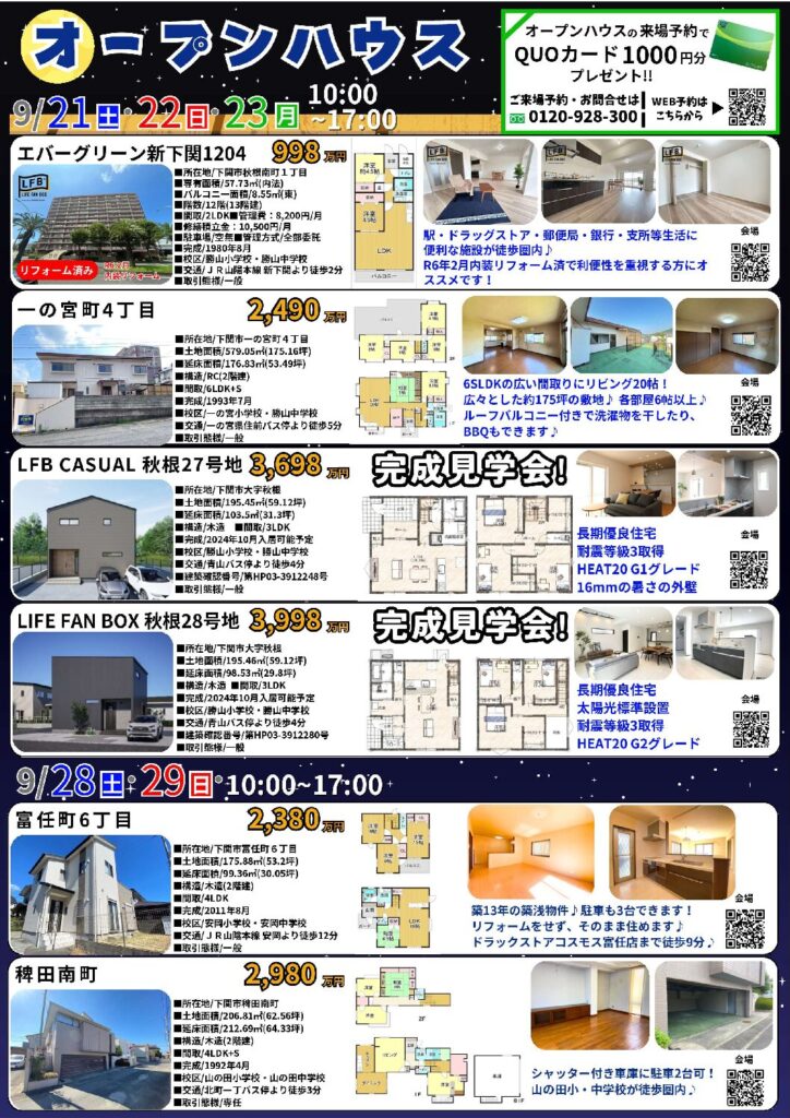 ハウスドゥ新下関店では、オープンハウスを開催します!