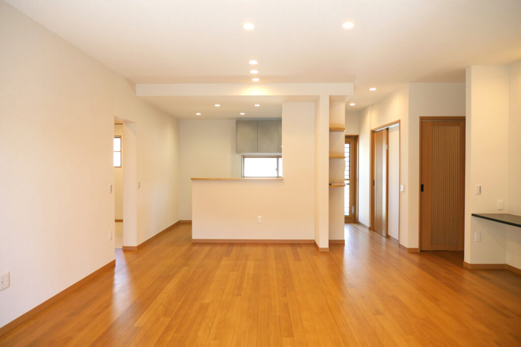 キッチンから部屋の隅々を見渡せるため、家族との繋がりを感じる空間となっています。