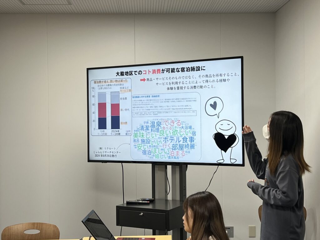 学生の皆さんが一人ずつ発表。それぞれ地域の課題をあげ、データを集め、アイデアをまとめました。