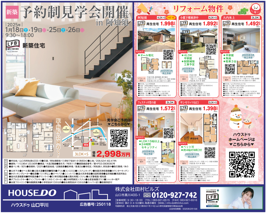 問い合わせ:TEL 0120-927-742 (ハウスドゥ!山口平川店)