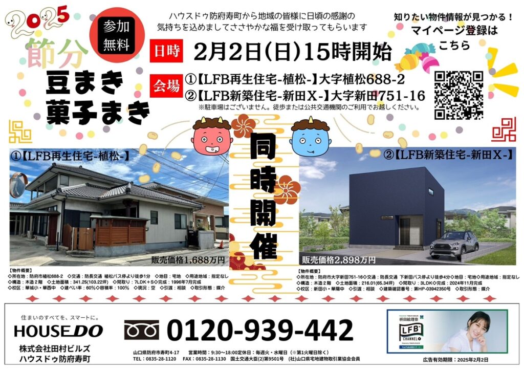 LFB住宅2棟同時で節分豆まき菓子まき開催(参加無料)