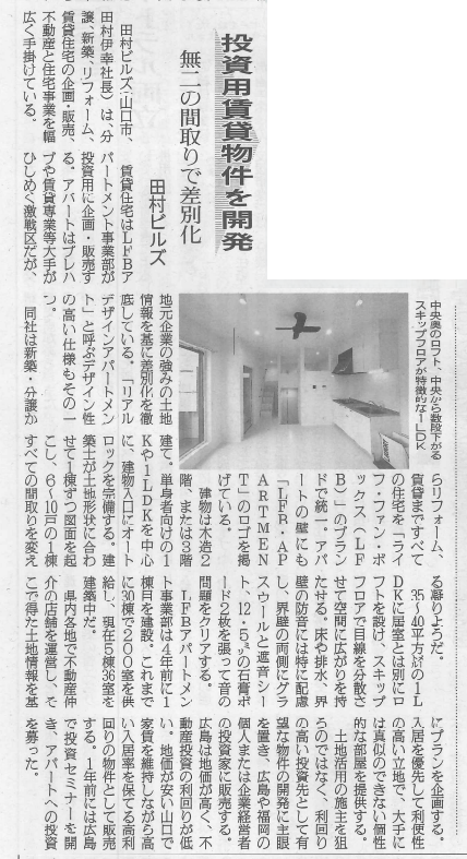 そのLFBアパートメント事業部が木材新聞に掲載されました。内容は事業部の現在や取り組みについてです。