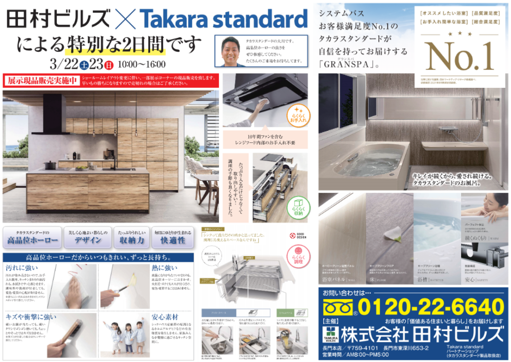 Takara standardのキッチン、システムバスの展示も行います!