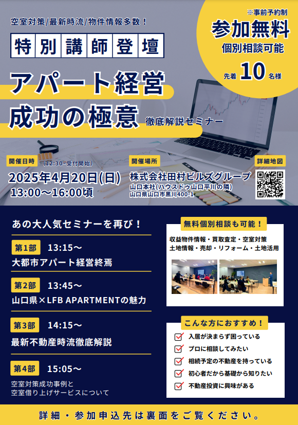 本セミナーでは、投資用アパート経営成功の極意を徹底解説!