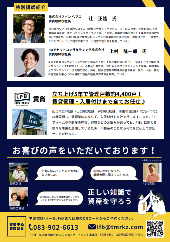 参加申込・お問合せ:TEL 083-902-6613 MAIL lfb@tmrkz.com