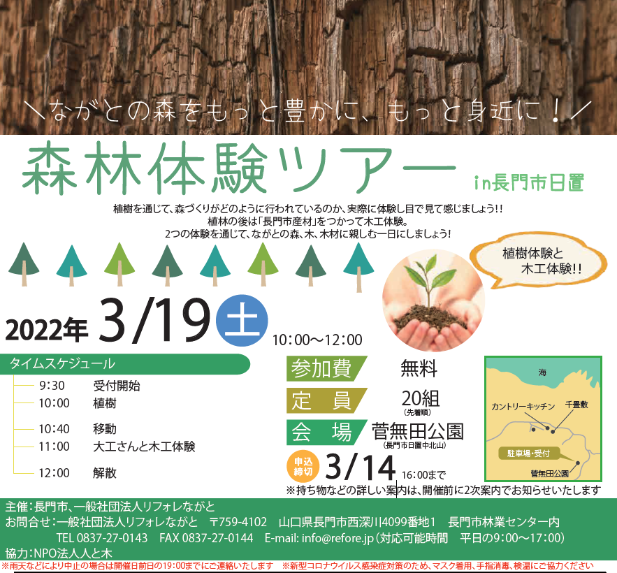3月19日(土)に長門市主催の「森林体験ツアー」が開催されることになりました。