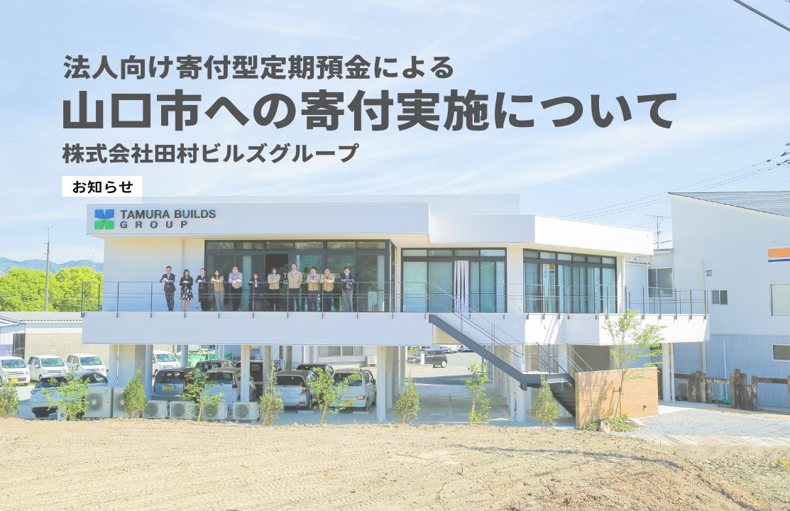 ⽥村ビルズグループは、山口銀行の「法人向け寄付型定期預金」を行い、⼭⼝市への寄付が実施されることに決定いたしましたので、下記のとおりお知らせします。