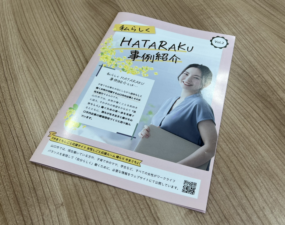 「私らしく HATARAKU事例紹介」は、子育ても仕事も大切にしながら自分らしく働く女性が活躍する山口市内企業とその女性を紹介するものです。