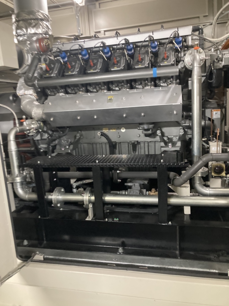 発電機はコージェネレーションシステムと呼ばれるもので、ガスタービンを用いて発電し、同時に発生する熱を有効活用することで高いエネルギー効率を実現するものです。停電時等のトラブルが発生した際に、自立起動して電力を供給することができます。