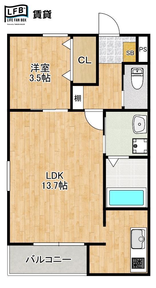 間取り/間取り内訳:1LDK/内訳:LDK13.7 洋3.5