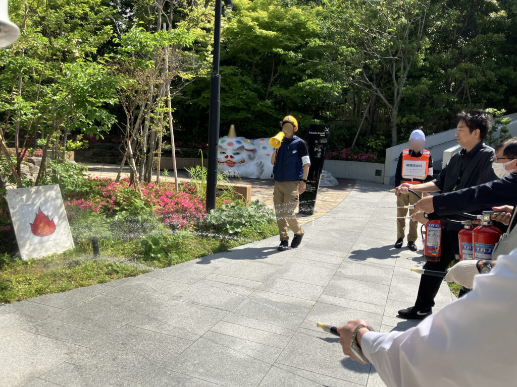 5月13日、福岡本社がある福岡大名ガーデンシティの消防訓練に参加しました。