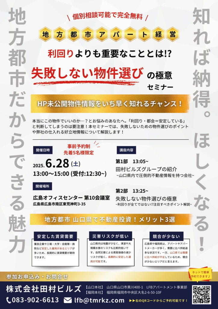 立ち上げから約5年、山口県内で35棟以上の土地仕入〜建築〜管理・入居付け〜販売まで全て自社で行ってきた会社だからこそ分かる、利回りが全てではない!注目すべきポイントを徹底解説します。