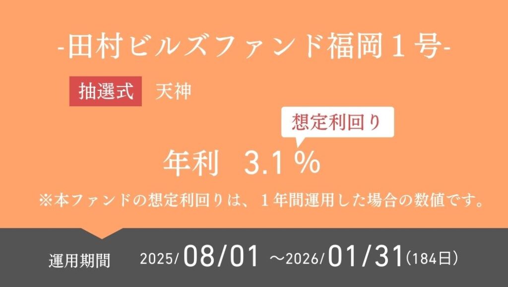第8弾として「田村ビルズファンド福岡1号」の募集を2025年6月27日より開始したところ、多くのご応募をいただき、109%の抽選出資申込で完売いたしました。