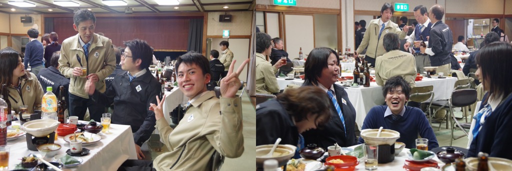 恒例のコンパでは、会場のあちこちでは数名ずつのグループが生まれ、仕事に対する熱い想いが飛び交っておりました。