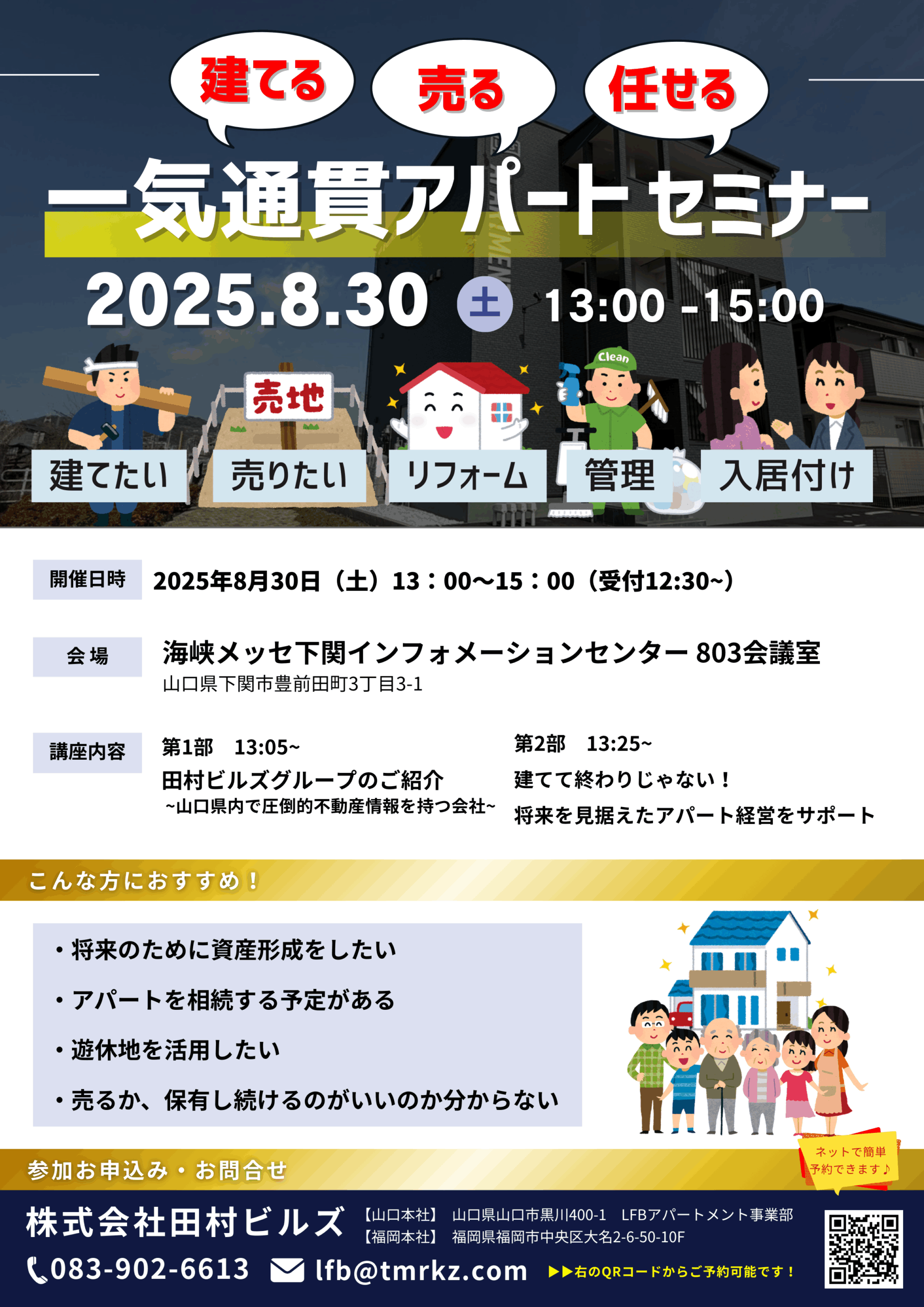田村ビルズが贈る一気通貫アパートセミナーのご案内です。
