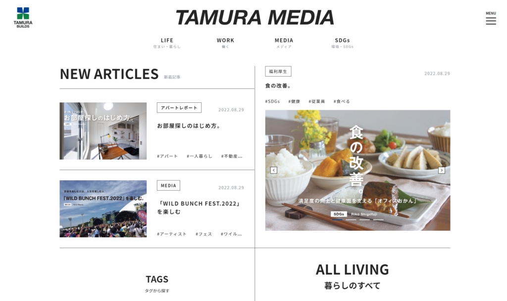 デザインも刷新しており、新たに『TAMURA MEDIA 』というページを設けております。