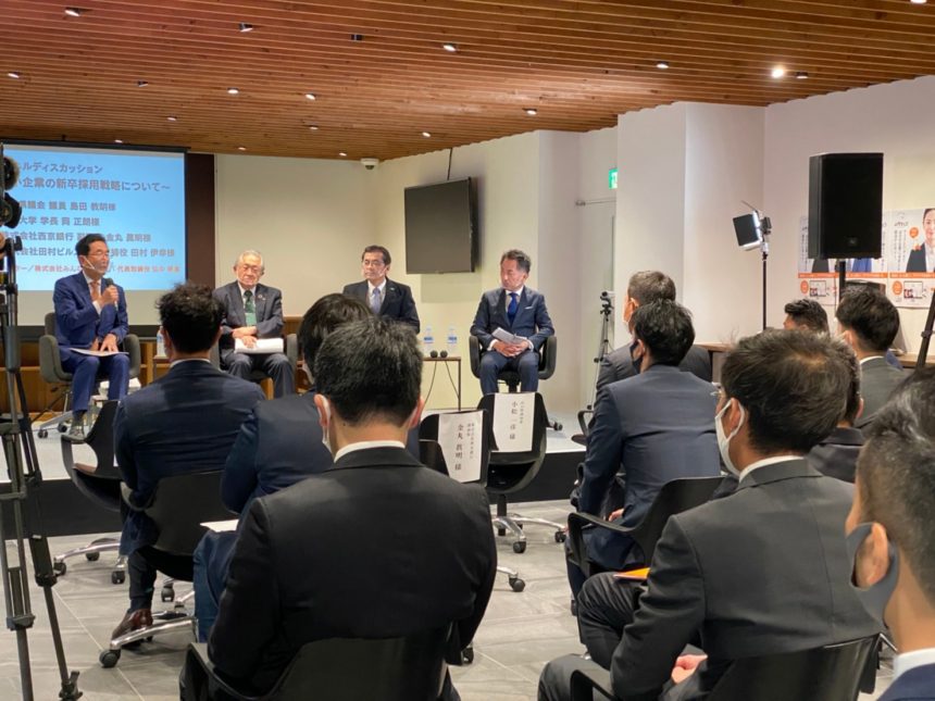 イベントプログラム「地方中小企業の新卒採用戦略について」では、パネルディスカッションのパネラーとして、山口県議会議員、山口大学学長、(株)西京銀行副頭取とともに、弊社代表田村も登壇させて頂きました。