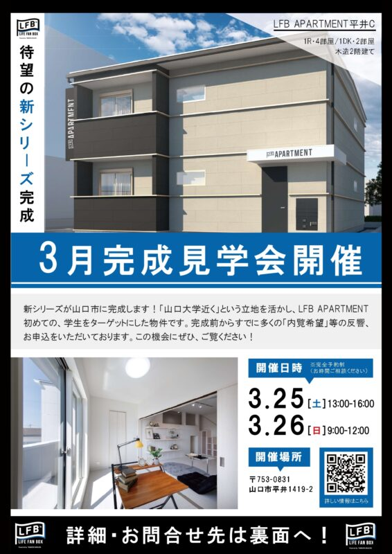 3月25日(土)・3月26日(日)山口市平井にてLFB APARTMENTの見学会を開催します