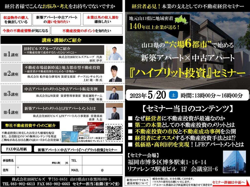 5/20(土)に、経営者必見の不動産経営セミナーを開催します!