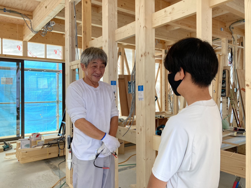 建築中の現場に行って職人さんの仕事を見学していただき、平面図を一緒に見ながら社員から説明を受け、事務所に戻ってからは、実際に現場で使用される図面(平面図やパースなど)の作成を熱心にされていました🔥