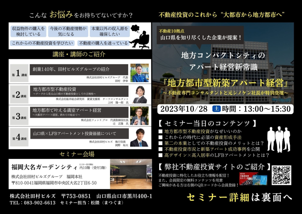 本日は福岡市にて開催の、アパート経営セミナーのお知らせです。