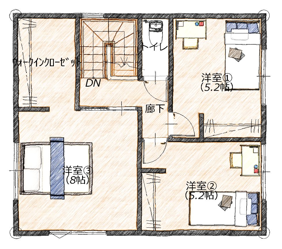 ・全居室収納があり、スペースを無駄なく利用した間取りとなっている