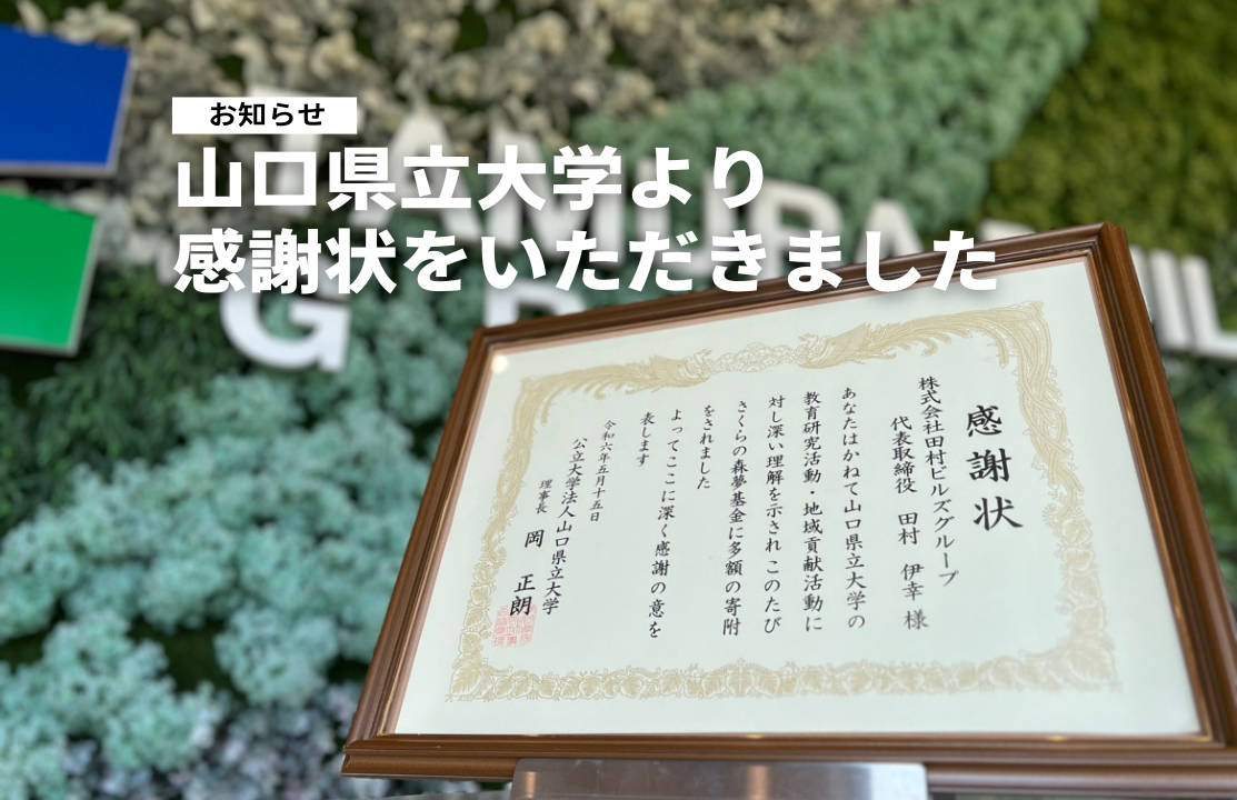 山口県立大学から感謝状(基金・PBL推進)をいただきました