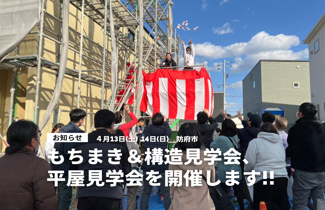 【4月13・14日】もちまき&構造見学会、平屋見学会を開催します in 防府