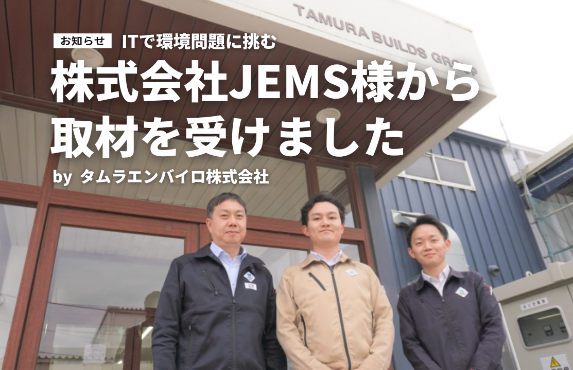 【ITで環境問題に挑む】株式会社JEMSさんから取材を受けました