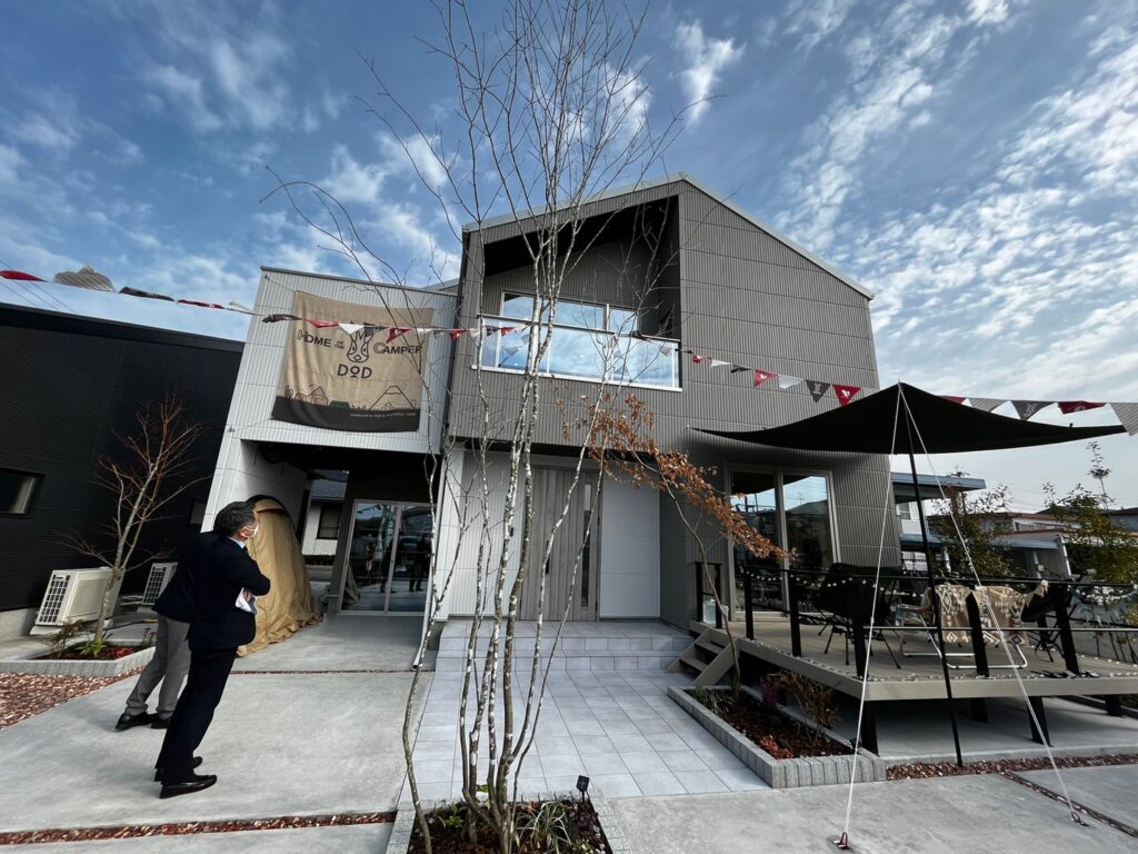 私自身、キャンプが好きでキャンプギアを集めたり、週末にはキャンプに出掛けたり、庭のウッドデッキでバーベキューをしたりとアウトドアを好むのですが、今回は、アウトドアブランド「DOD」とハウスメーカー「ユニバーサルホーム」がコラボした家ができたと聞き、八代市まで行ってまいりました!