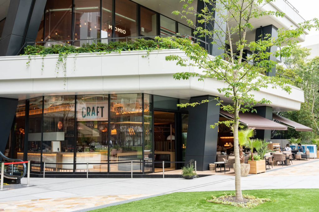 上層階にはラグジュアリーホテル「リッツカールトン」が入居し、芝生が美しい広場、イベントステージ、レジデンス、オフィス、飲食店などが入っています。