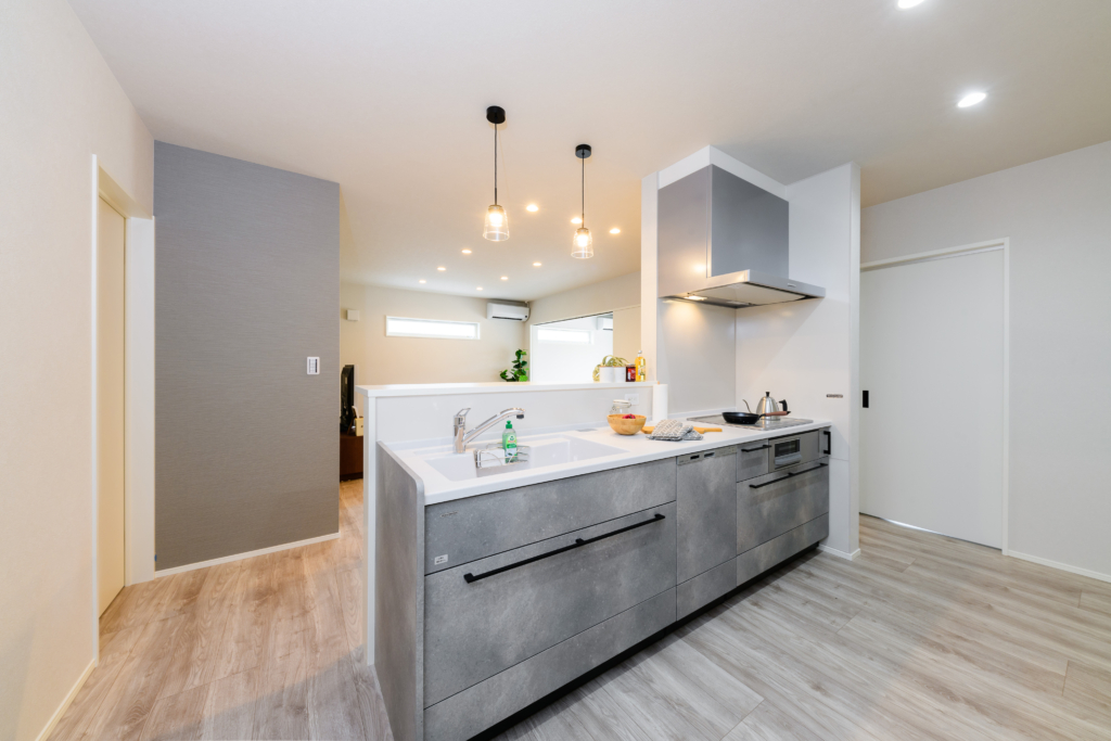 K様(奥様):えっと、やっぱり私は平屋が一番望んでたんですけど、部屋の大きさも広いから、けっこう子どもが活発やからすごく駆け回る。それをやっぱりね、あのキッチンに立ってて、見るのもやっぱり微笑ましいし一緒になんか、運動会みたいな感じで、家族でわぁーって遊んだりもできるので、すごく広さ的にも満足してるし、キッチンも広いし。本当にビックリしたのは、あの何ですっけ、あれ…食器棚?