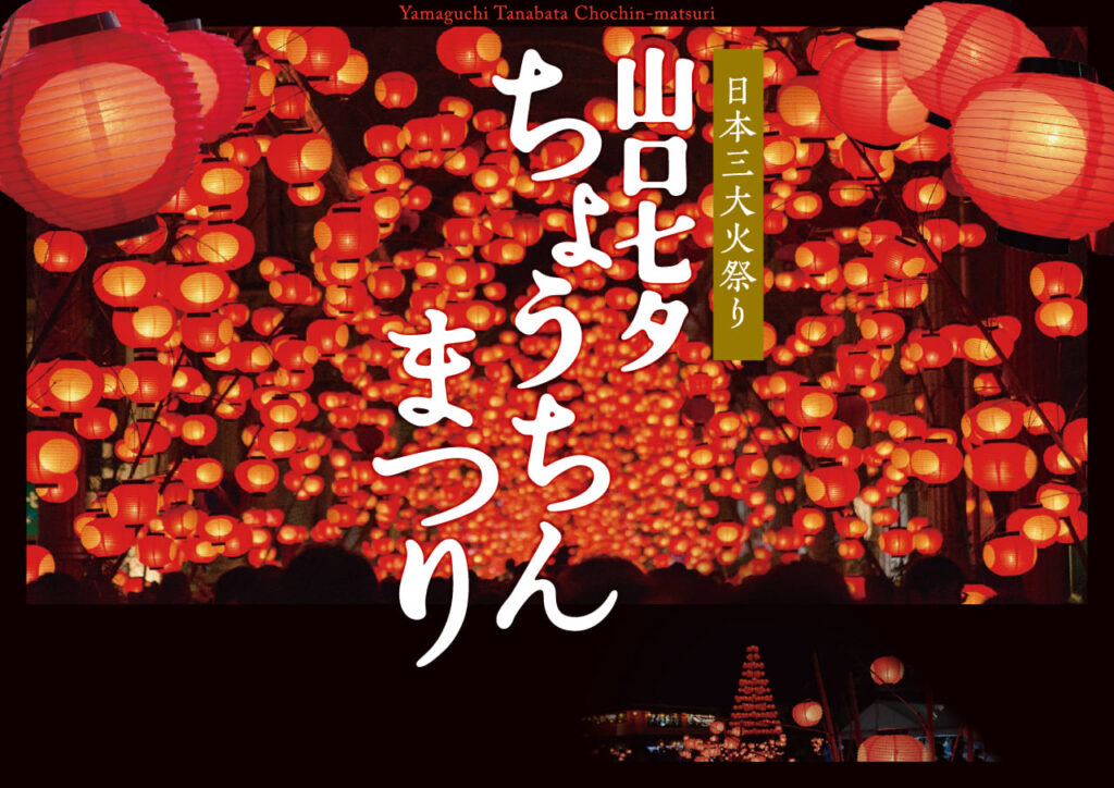 - 毎年8月6日~7日に、開催される山口七夕ちょうちんまつり。この祭りは、室町時代に山口を本拠として領国を治めていた、守護大名の大内盛見が先祖の冥福を祈るため、お盆の夜に笹竹の高灯籠に火を灯したのがはじまりで、歴史のある祭りです。