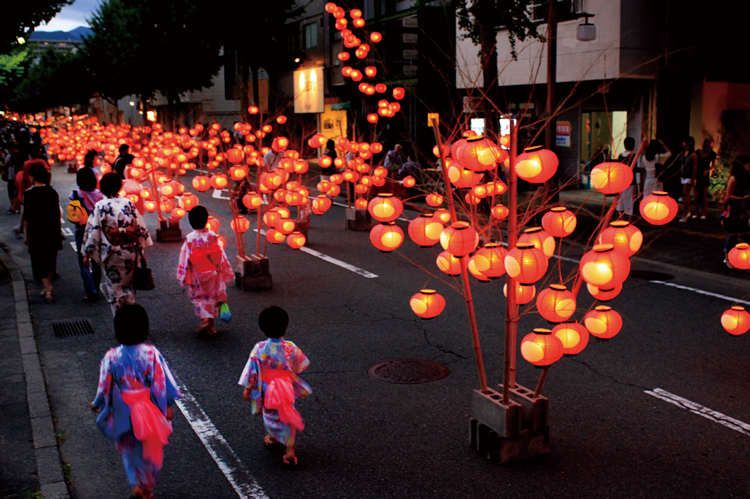数万個のちょうちんが山口市中央商店街を照らす