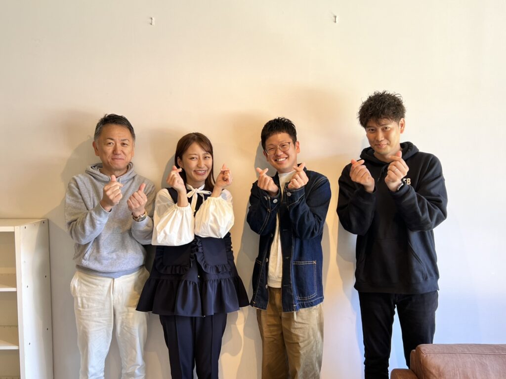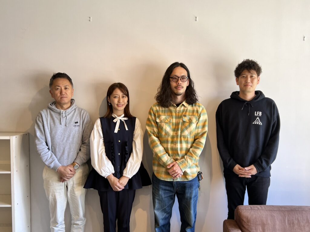 左から田村社長、枡田絵理奈さん、コサカダイキさん、岡野裕太さん