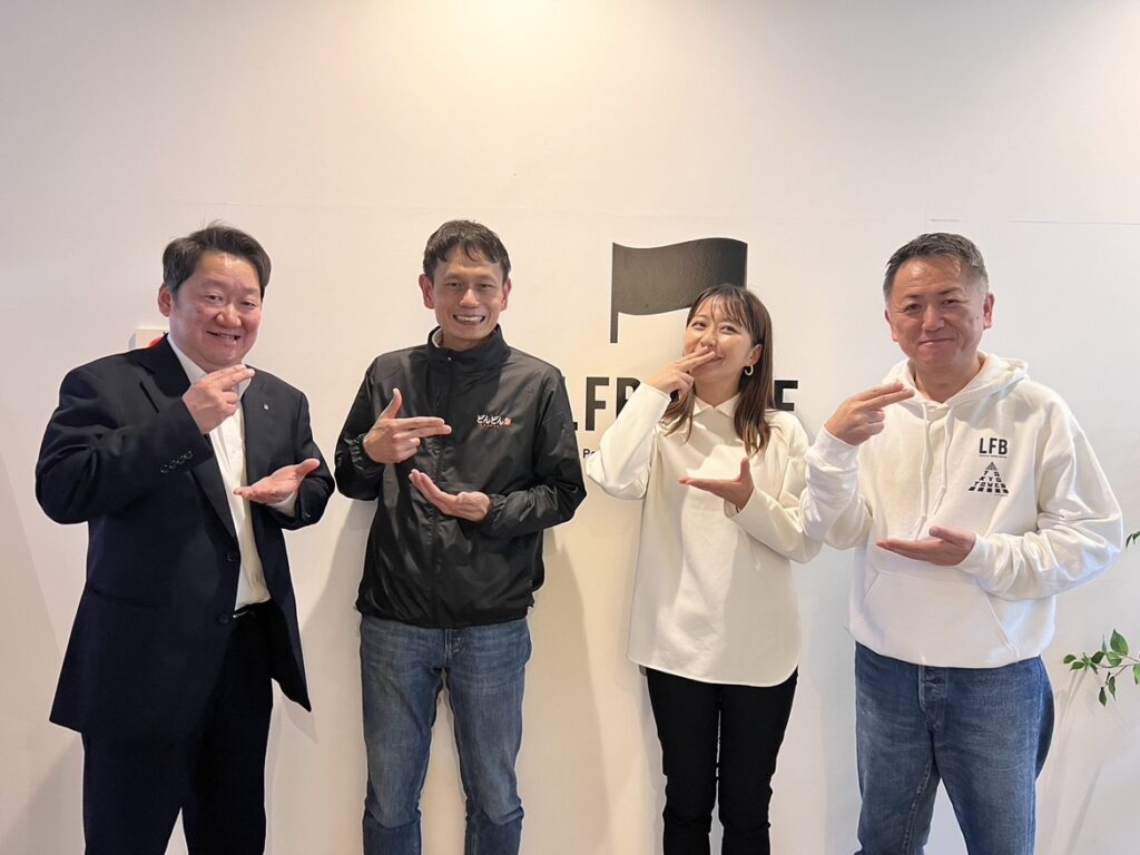 左からアシスタント新田和彦さん、砂田透さん、枡田絵理奈さん、田村社長