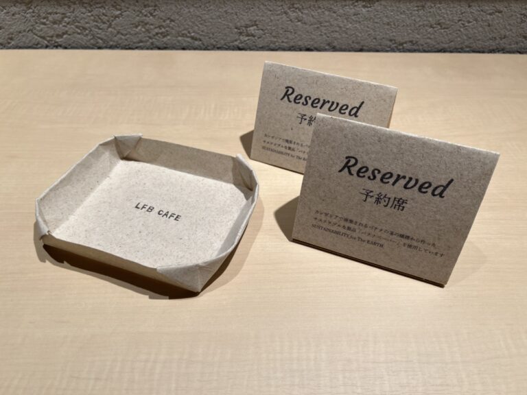 当社が運営しているLFB CAFE。トイレの壁紙や小物類にバナナペーパーを使用しています。
