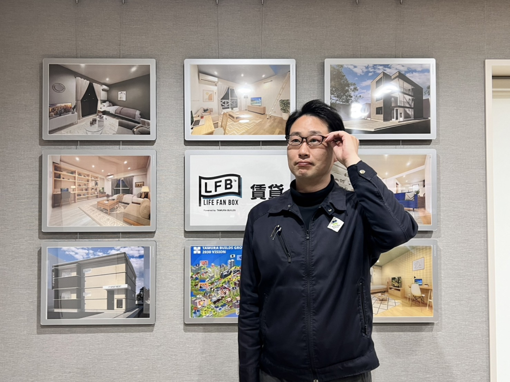 「祖父が大工で、叔父が1級建築士なこともあって元々建築関係に興味がありました。ですが興味を仕事にしようという考えはなかったです。就職活動では車のディーラー、広告代理店など様々な業種を見て回りましたが、結局は興味があって楽しいことを仕事にするほうがいいなと思いました。グランドホテルで河村さんと当時の2期生が会場にいらっしゃって、視線を感じたのでフラッと話を聞いてみました。随分前のことなので、内容までは覚えていませんがすごくワクワクさせてもらった記憶があります。ありがたいことに採用していただきましたが、最初はリフォームの営業として長門店に配属され、働く姿が想像できてなかったです。年齢が一番近い人でも8個くらい離れていて、30後半の人が多かった印象です。賃貸とか売買に限らず、色々なことに挑戦したいと思っていたので就職してから、様々なことを経験させてもらっているのでありがたいです。」